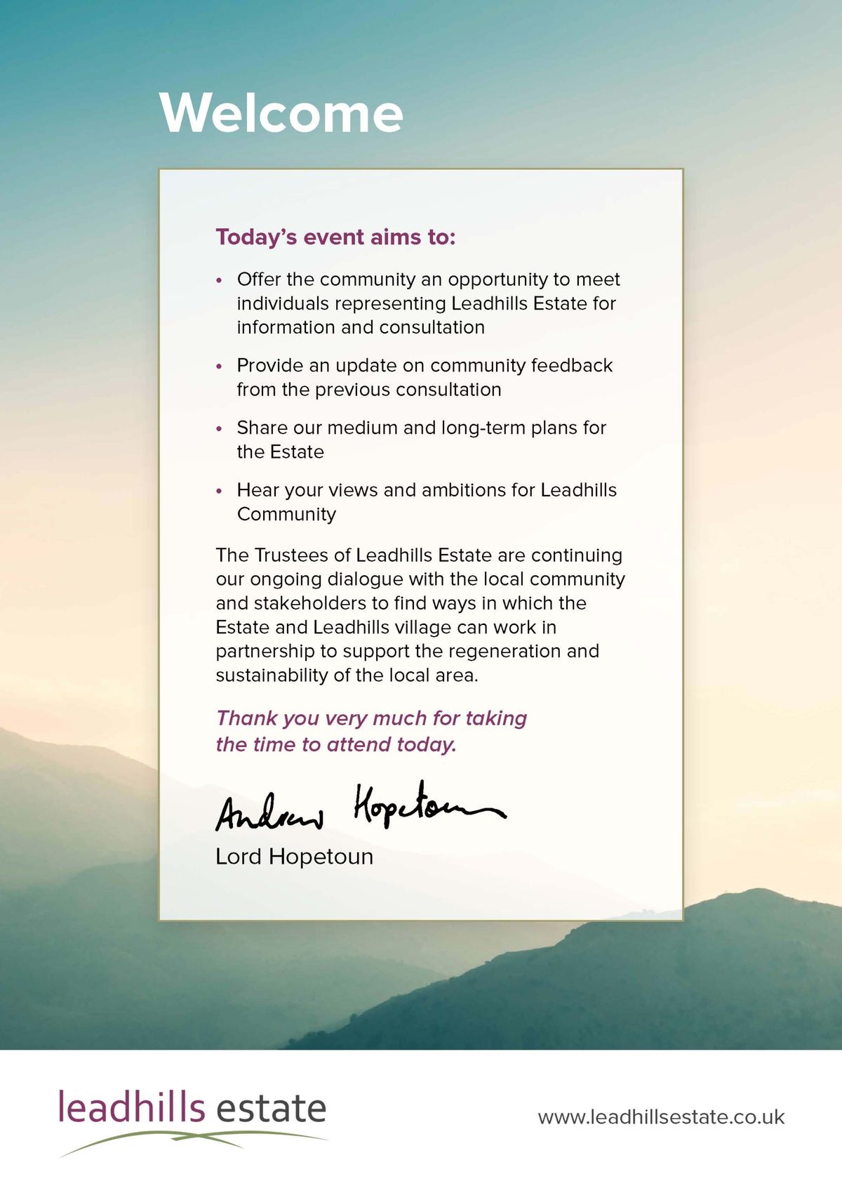 Representatives from the Leadhills Trust, including Lord Hopetoun, hosted a very successful Information Day at Leadhills Village Hall on Wednesday 23rd October. The event followed on from a similar information day held in 2018 in which the Estate outlined its plans under the themes of the Community, Leisure and Recreation, Landscape...