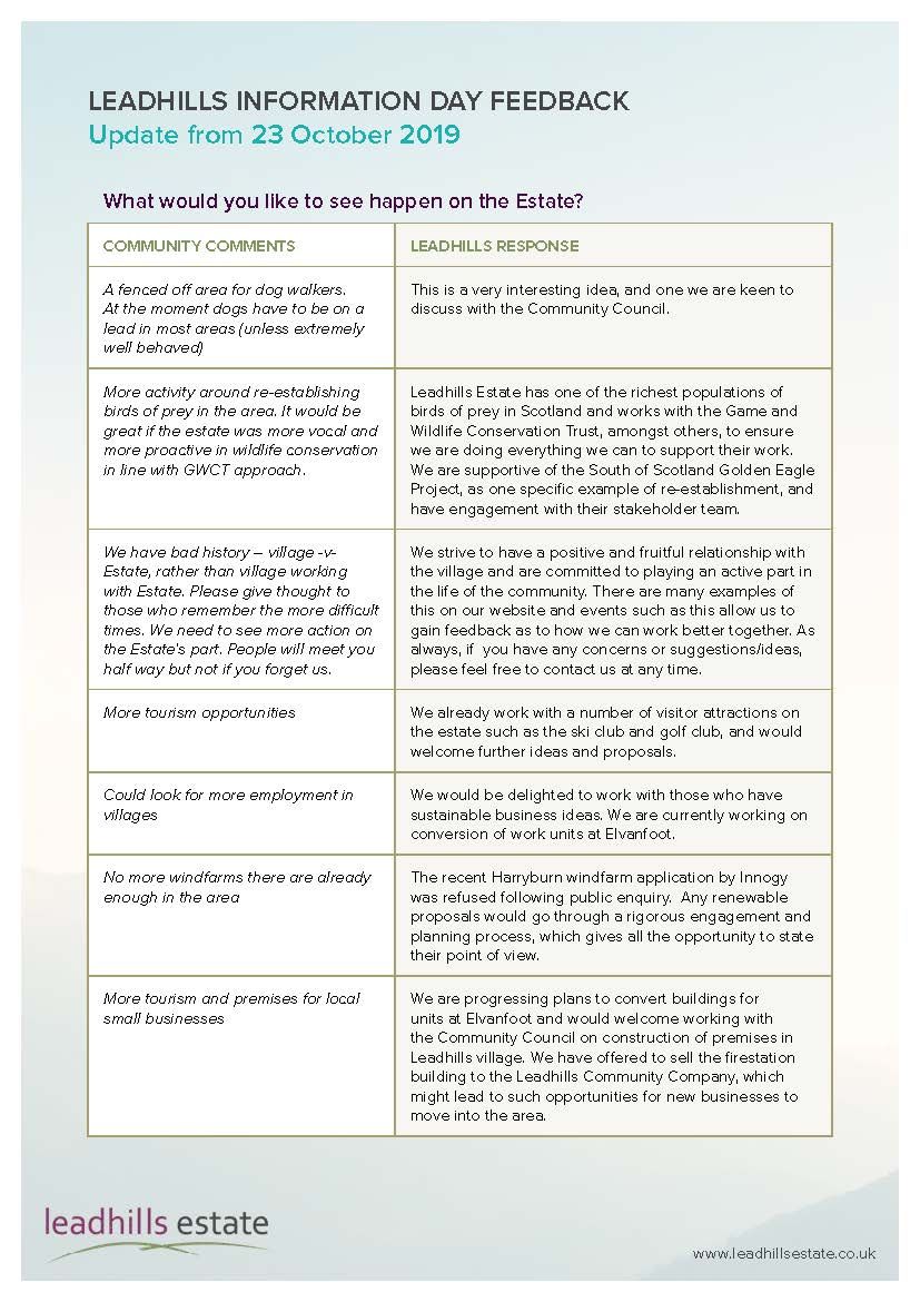 Leadhills Estate > News > News > Community Information Day 2019 Feedback
