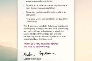 The event followed on from a similar information day held in 2018 in which the Estate outlined its plans under the themes of the Community, Leisure and Recreation, Landscape and Conservation, Heritage, Property and Farming and Field Sports.